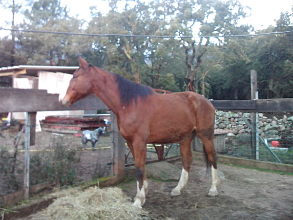 Fin juin, Chantal nous a contactés : son cheval venait de mourir de vieillesse, sa jument était inconsolable et ne s'alimentait plus. Elle cherchait donc à adopter, très rapidement, un cheval pas trop vieux pour compagnie. Nous lui avons proposé Noël et elle n'a pas hésité une seconde. Le temps de trouver un transporteur et Noël s'installait, le 2 juillet, près de Porto-Vecchio.