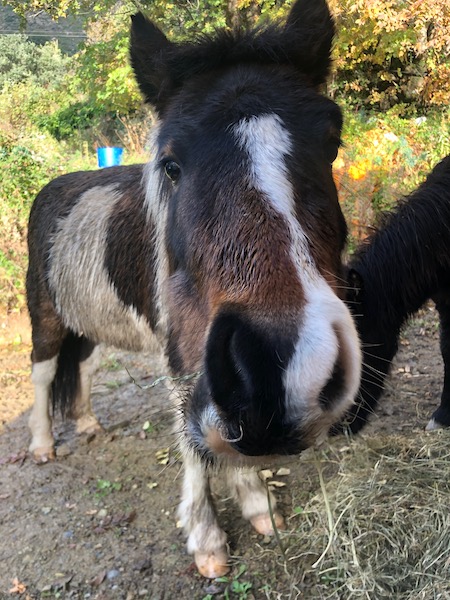 Pirouette a été récupérée par un vétérinaire dans le Cortenais alors qu'elle était en divagation, au cours de l'été 2016. Tenté de garder cette ponette très proche de l'homme, agée de plus de 15 ans, il a finalement choisi de la mettre à l'adoption, pour son bien-être.